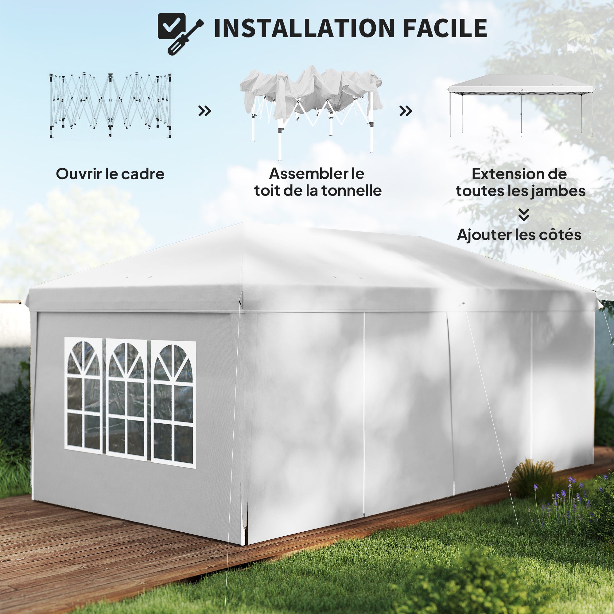 • Tonnelle de jardin pliante 6 x 3 m tonnelle de jardin extérieure barnum pliant pop-up imperméabilisé 4 parois latérales amovibles 4 fenêtres + sac de transport blanc
