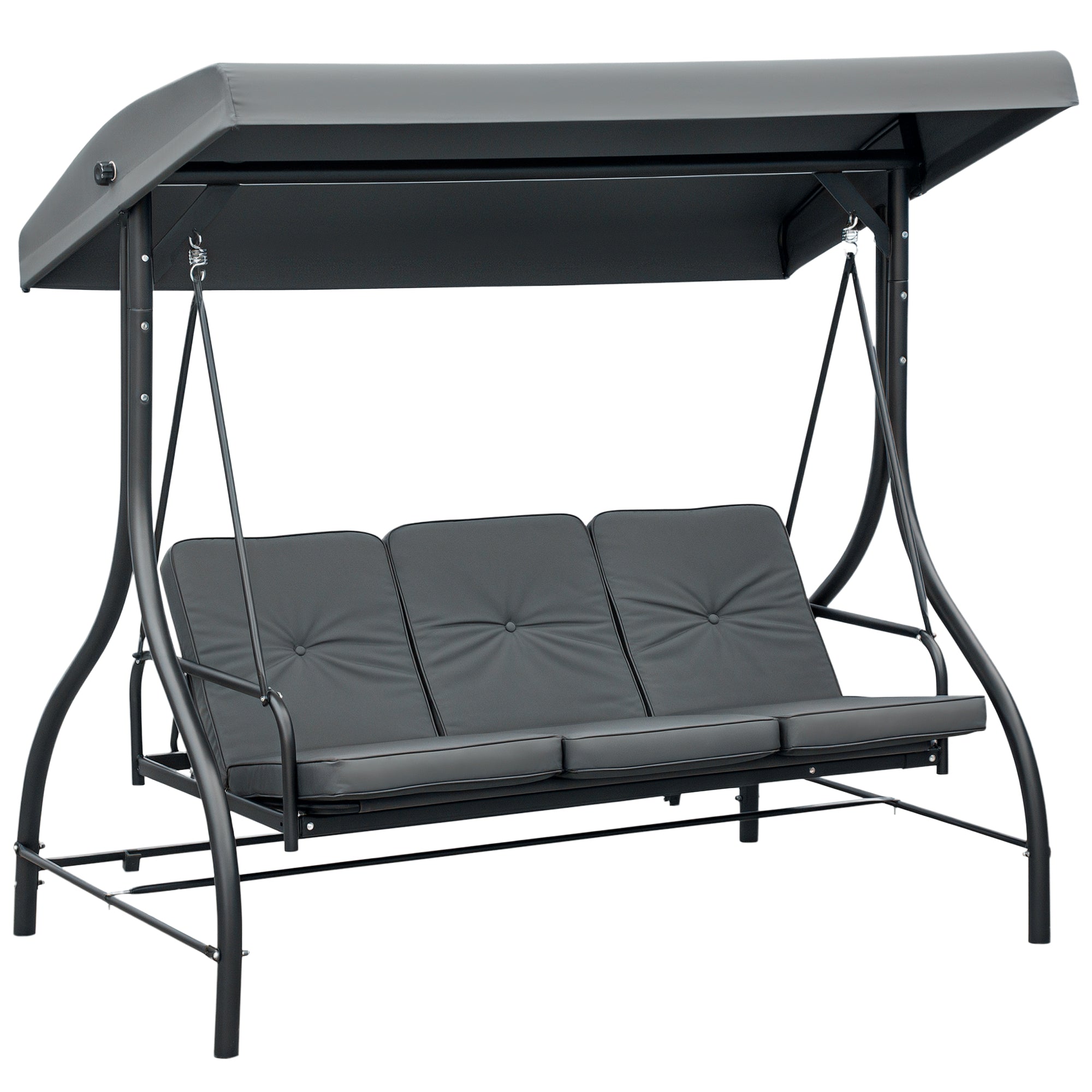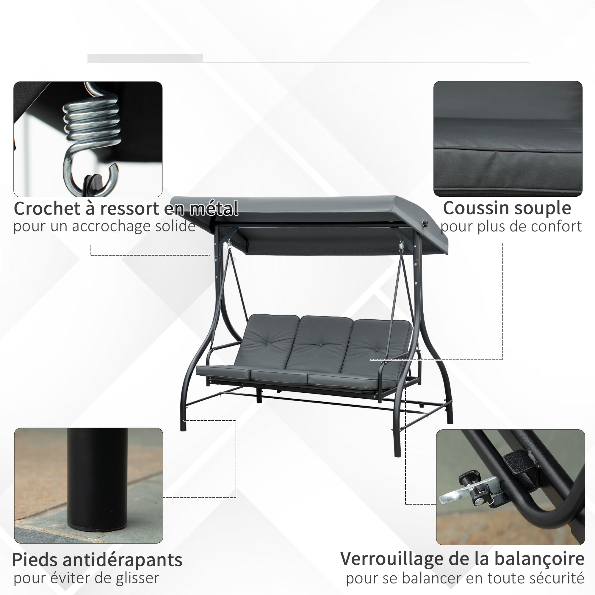 • Balancelle de Jardin 3 Places Convertible Inclinaison Toit réglable Matelas Grand Confort Rembourrage 7 cm fourni Gris métal époxy Noir