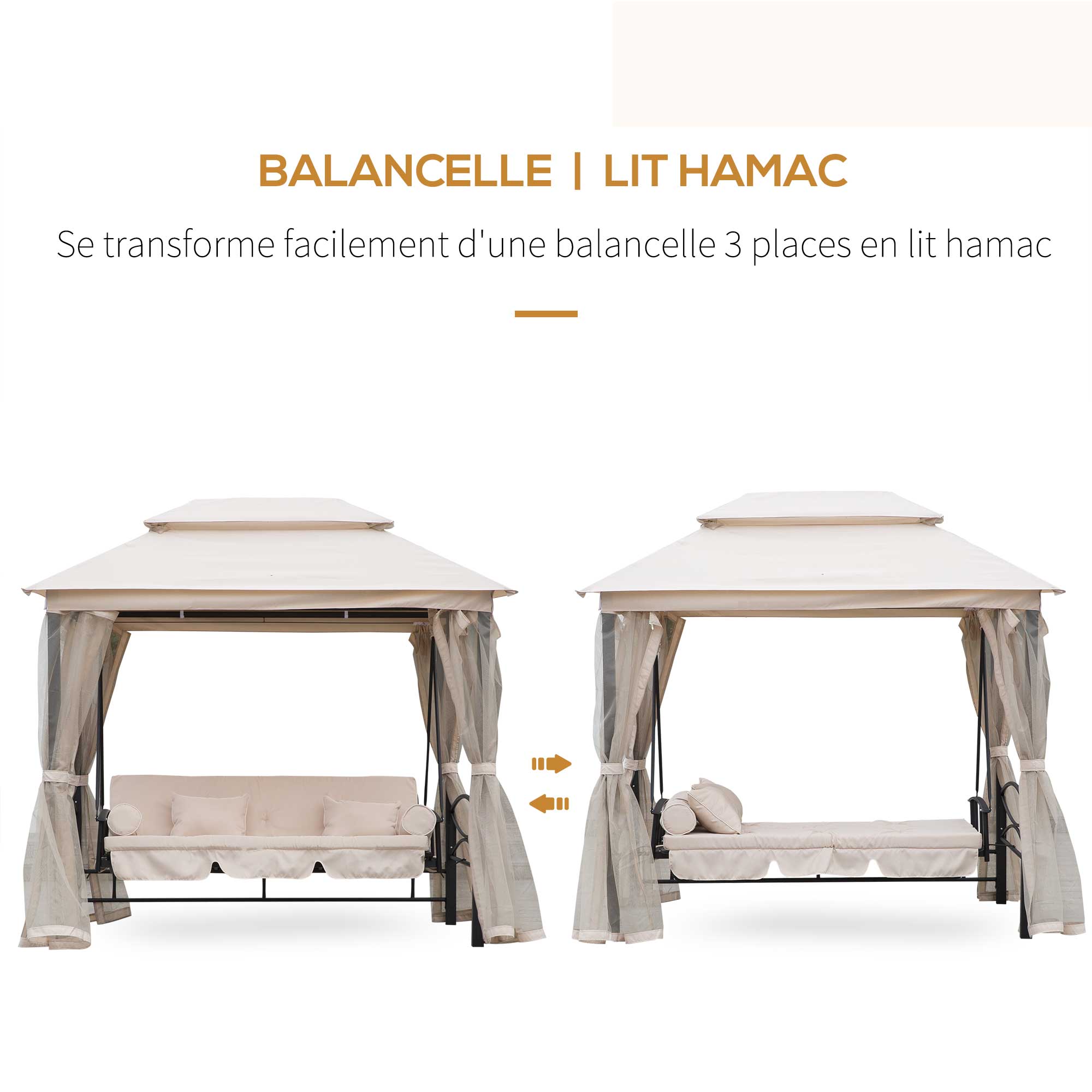 - BALANCELLE CONVERTIBLE : balancelle convertible afin de vous permettre de vous asseoir ou de vous allonger à votre guise