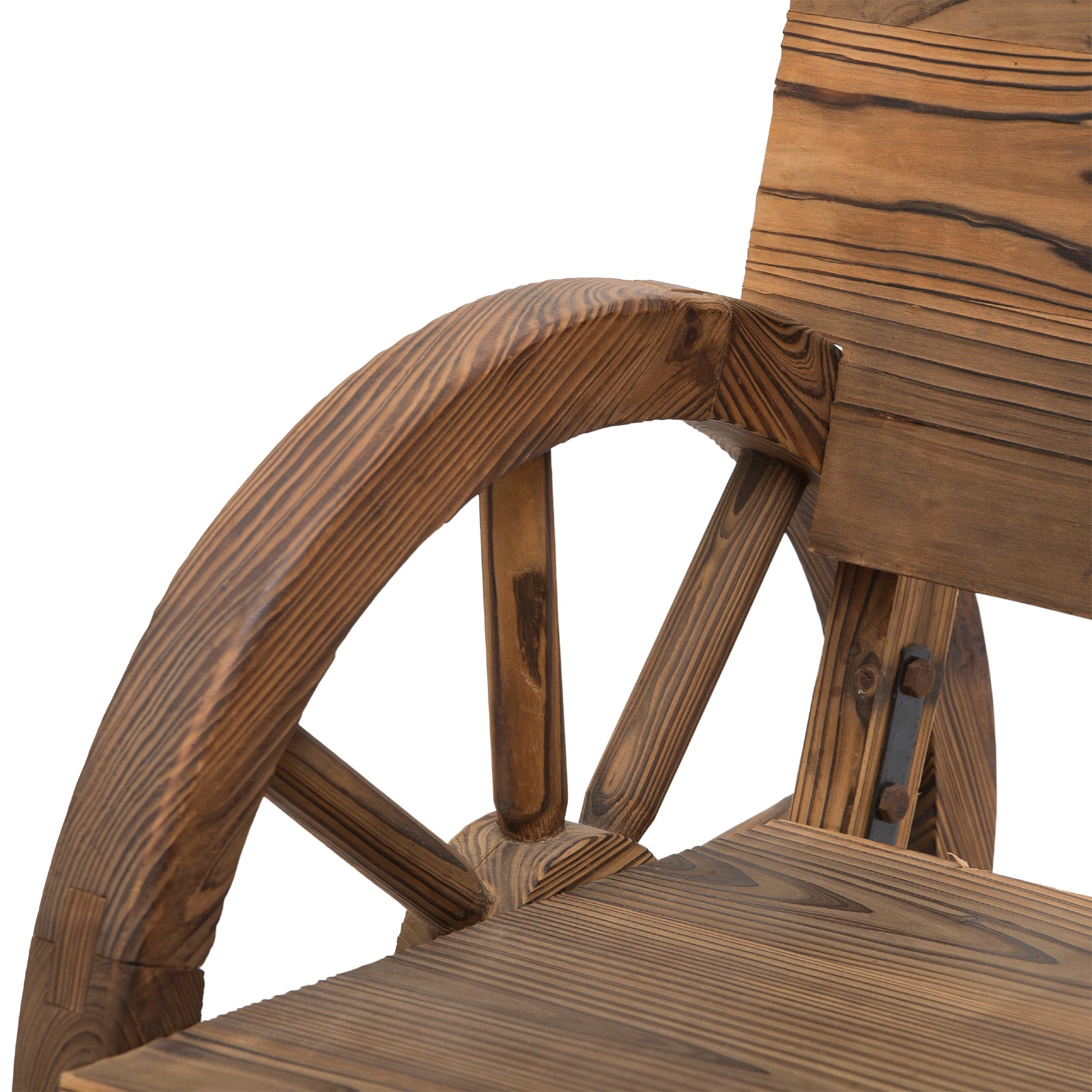 Banc de Jardin 3 Places Style Rustique Chic accoudoirs Roues de Charette Bois Sapin traité carbonisation