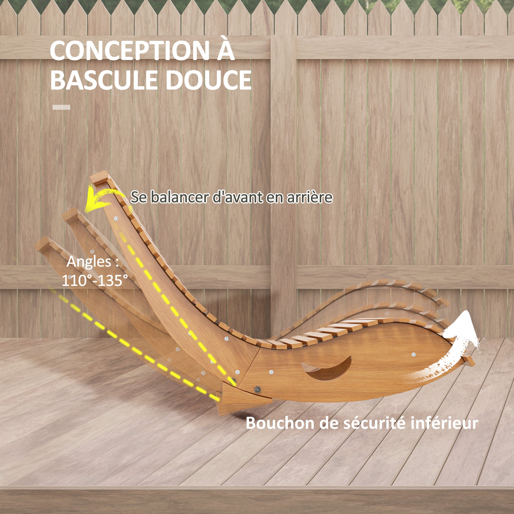 • Chaise à bascule - Rocking chair d'extérieur jardin ergonomique avec siège à lattes et dossier haut en bois dim. 130L x 60l x 60H cm