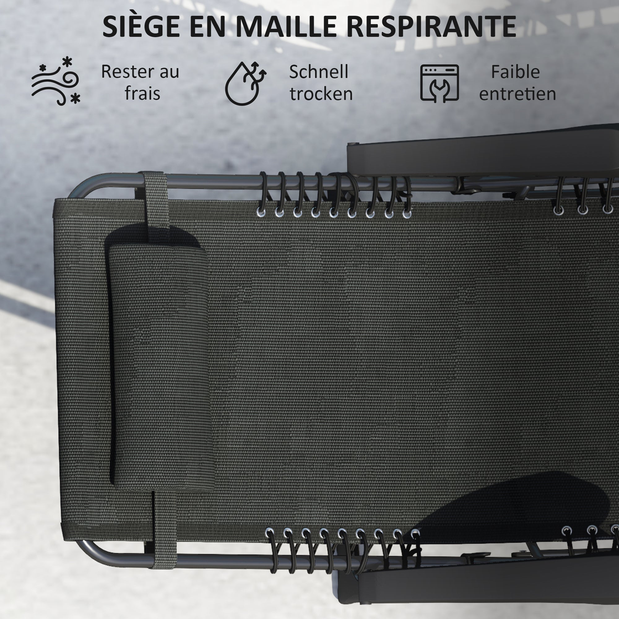 Lot de 2 bain de soleil, chaise longue pliante inclinable avec appuie-tête en textilène, 90 x 65 x 112 cm, noir
