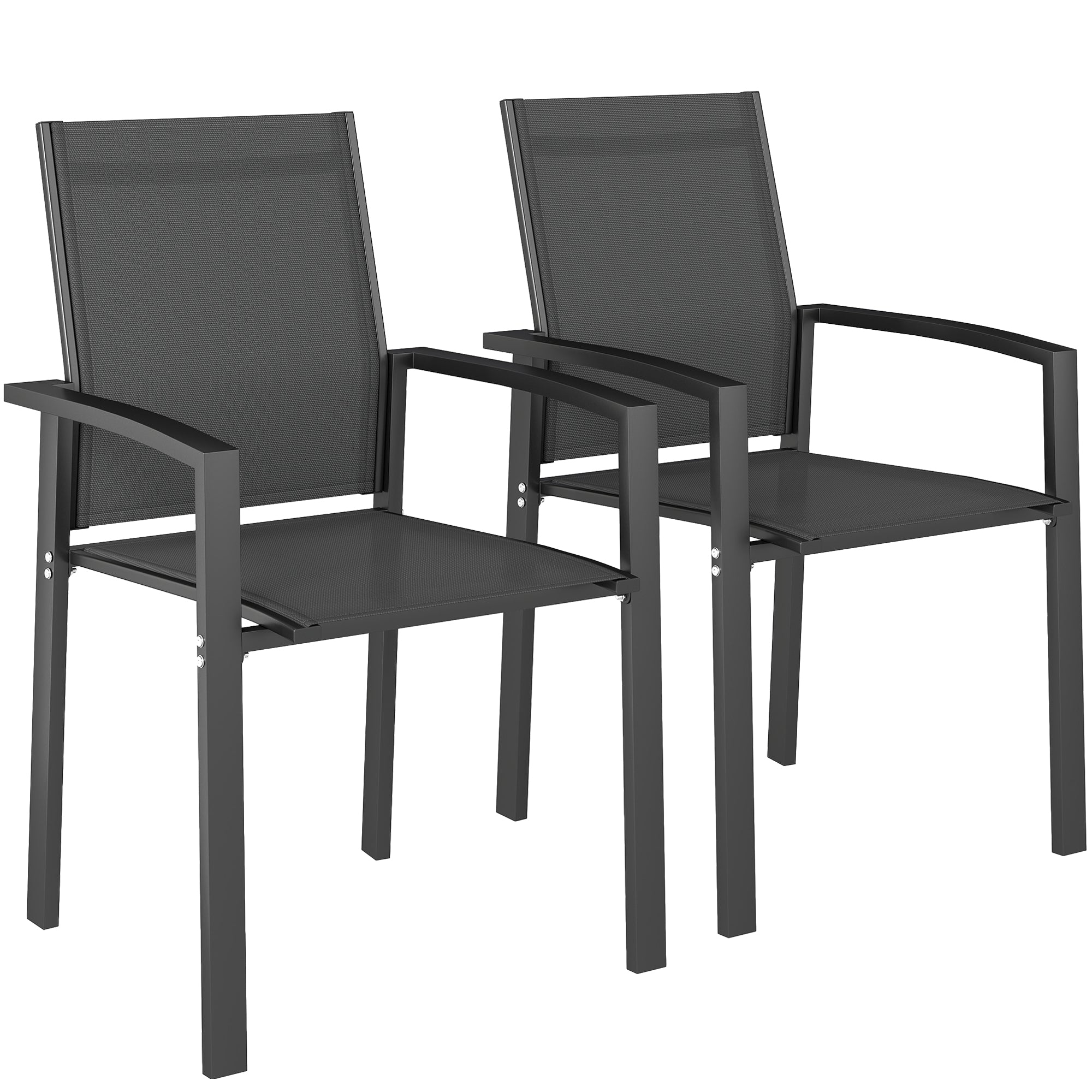 • Lot de 2 chaises de jardin chaises empilables d'extérieur respirant avec accoudoirs, en aluminium et textilène pour jardin, piscine, terrasse, gris foncé