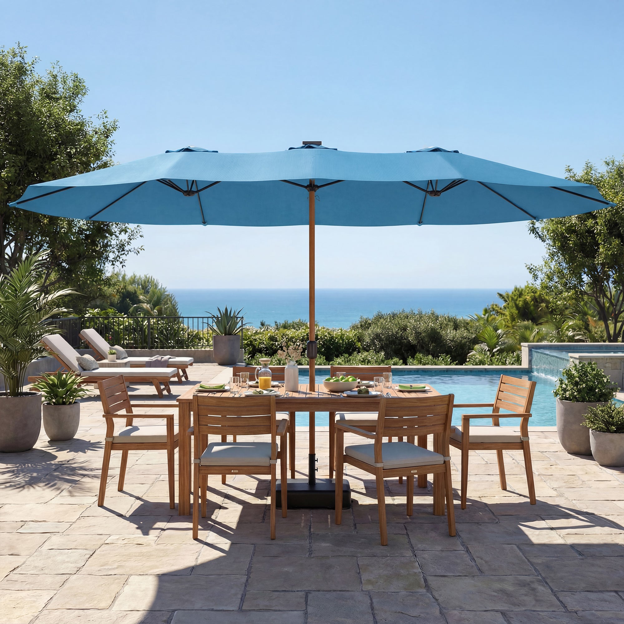 - Parasol double face extra-large offrant une ombre étendue pour les grands ensembles de patio;