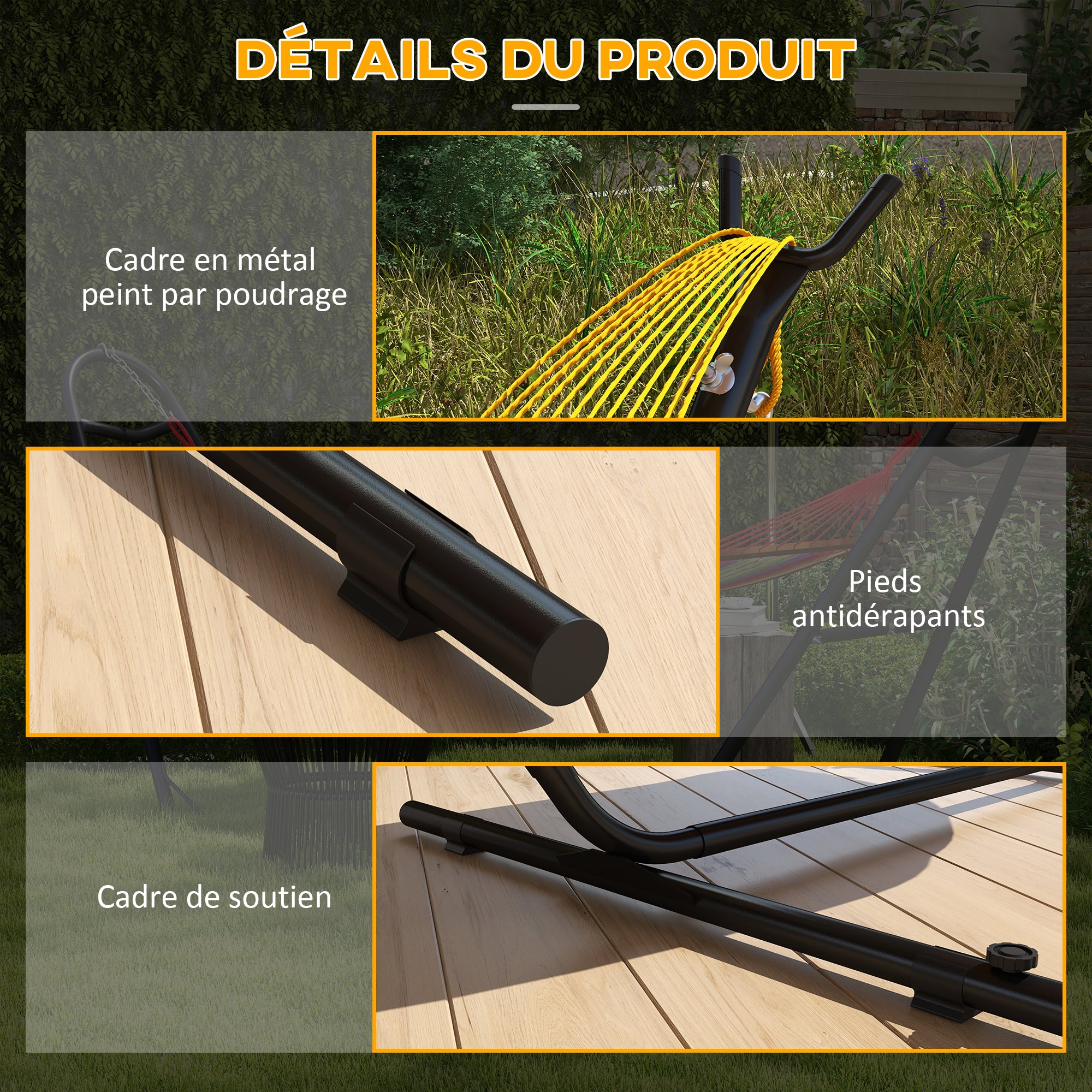 Support Pied de hamac avec porte-gobelet Structure Robuste métal époxy Noir dim. 305L x 129l x 109H cm 150kg sans hamac