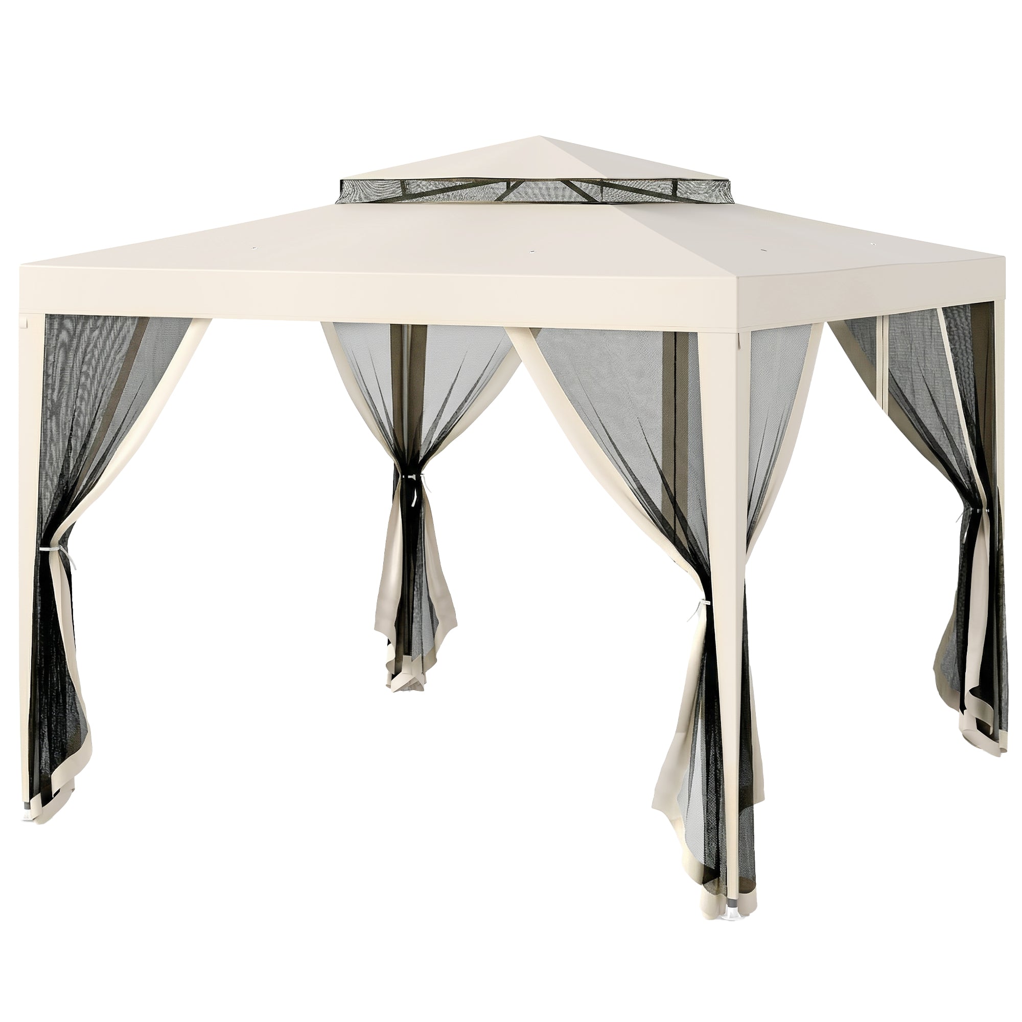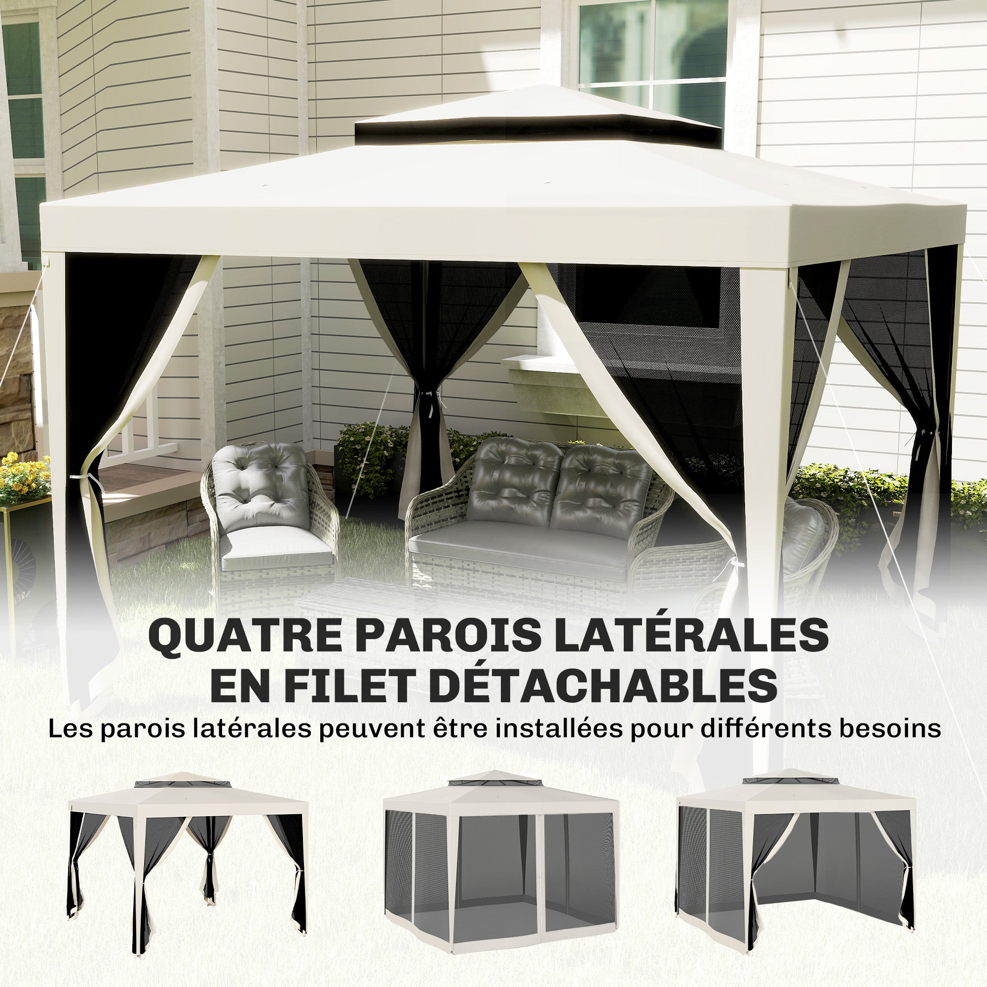 Tonnelle barnum de jardin 3 x 3 m avec 4 moustiquaires amovibles - double toit - crème