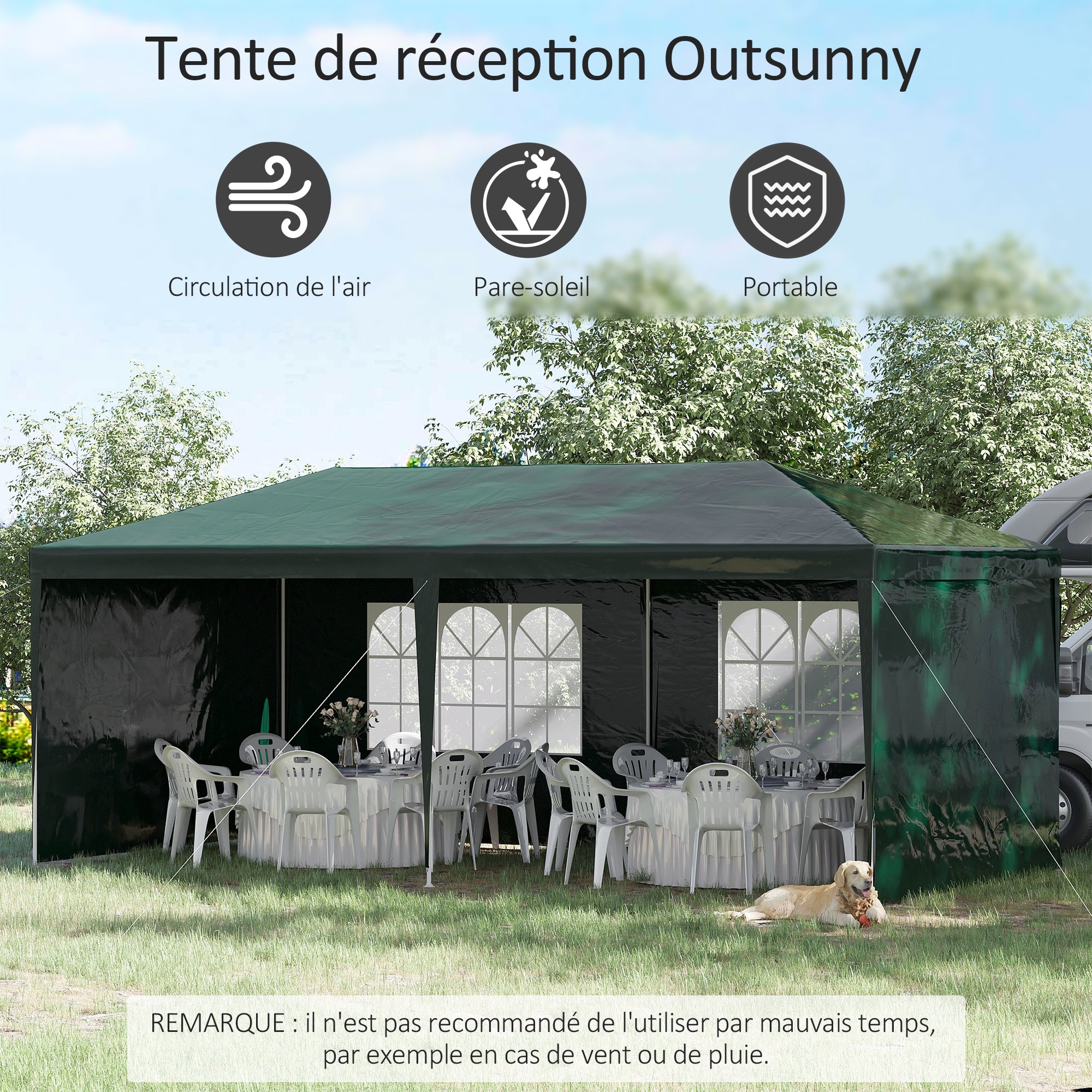 Tonnelle de jardin, tente de réception avec Fenêtres et parois latérales amovibles, pour fêtes et mariages, 6 x 3 m Vert