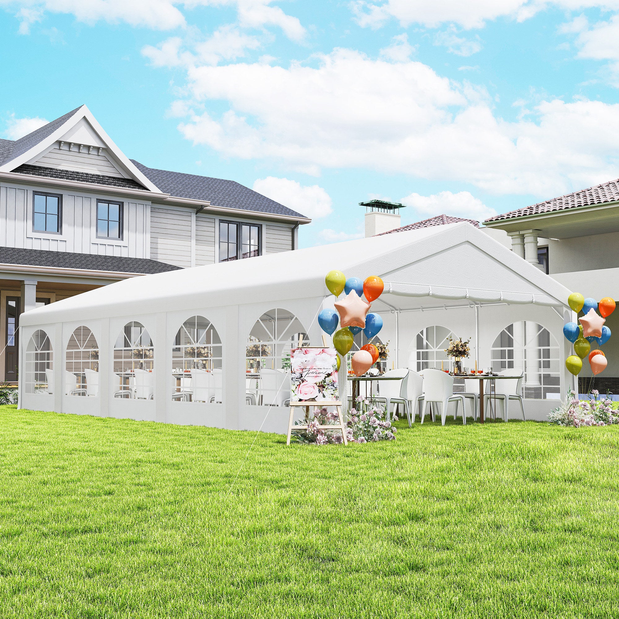 - ACCESSOIRES COMPLETS : Cette tente de réception dispose de 50 piquets, 4 cordes, élastiques pour parois, connecteurs à verrouillage, garantissant un montage rapide, stable et sécurisé avec tous les accessoires nécessaires