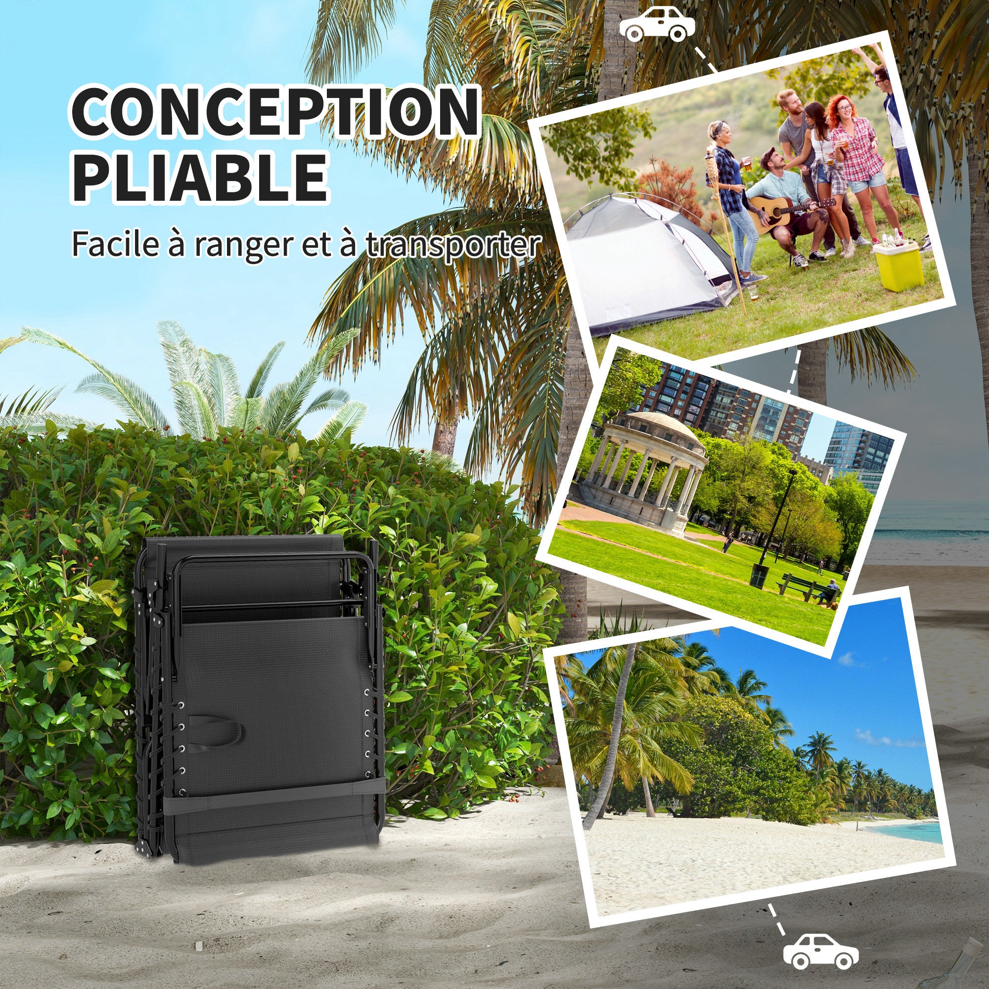 - DESIGN PLIABLE : Ce transat pliable est conçu pour un déploiement et un repliage rapides en quelques secondes, facilitant son transport et son rangement lorsque non utilisé
